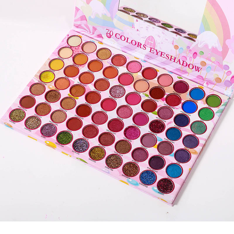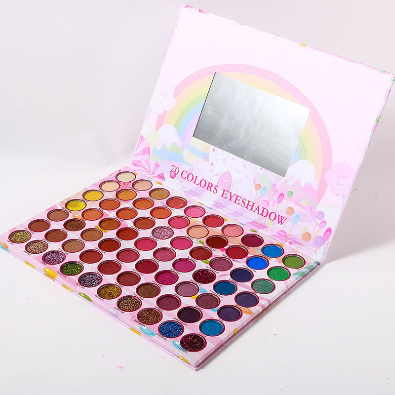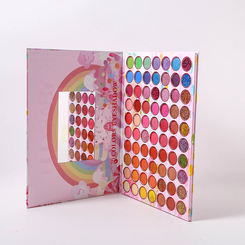 Wholesale waterproof pink rainbow custom palette packaging eye shadow palette with mirror
