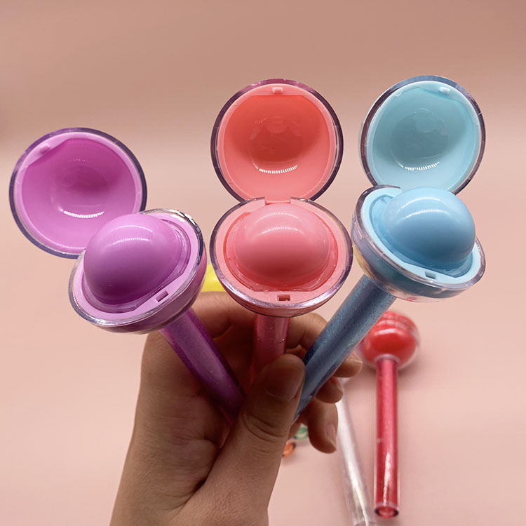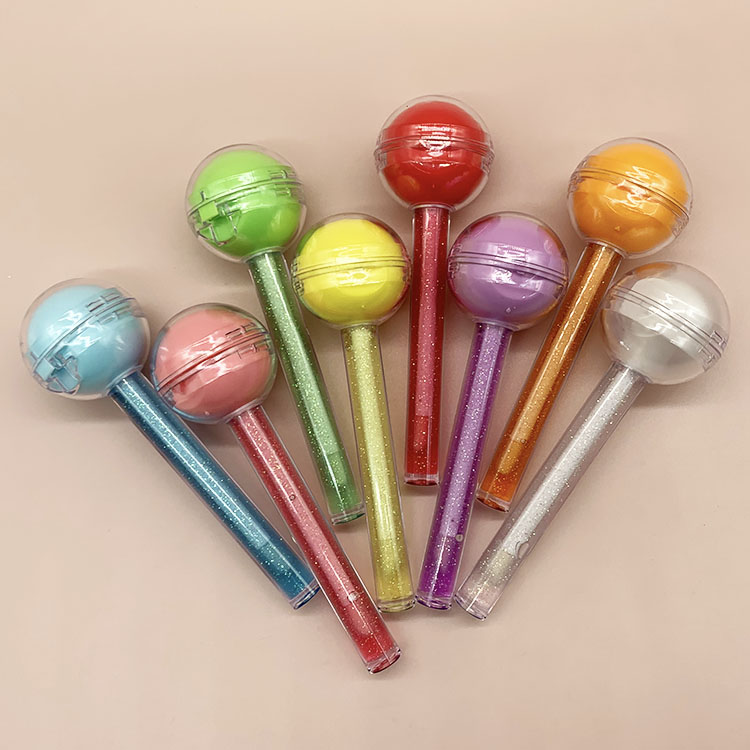 2 In 1 Dual Use Lollipop Lip Balm Color Fruity Moisturizing Lip Gloss Kids Cosmetics