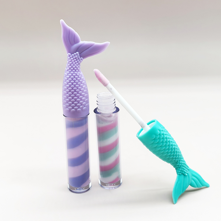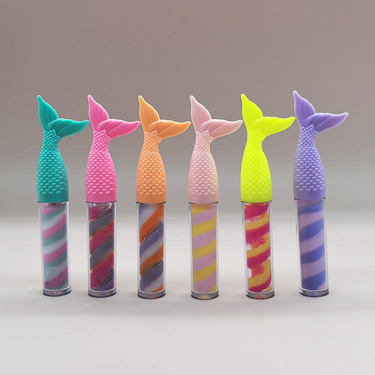 Private Label Lipgloss Mermaid Shaped Vegan Waterproof Kids Gloss colorful swirl Lip Gloss